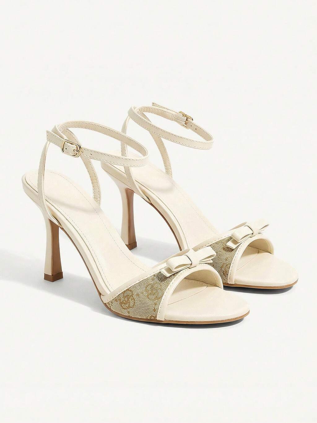 CUCCOO CHICEST Women Shoes Beige Small Rose Print Design Fashionable And Elegant Summer And Summer Elegant Round Toe Ankle Strap Stiletto Sandals Wedding Shoes Summer Shoes Bride Shoes