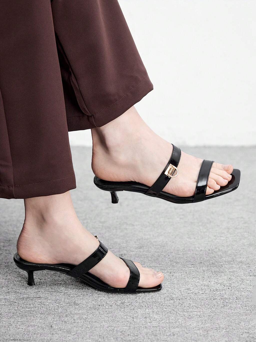 CUCCOO BIZCHIC Women Shoes Spring And Summer New Black Striped Toe Metal Buckle Women's Middle Heel Sandals Slippers Simple, Stylish And Comfortable Daily Versatile Commuter Women's Sandals Women's Shoes Summer Shoes