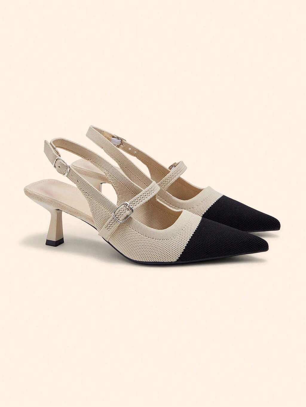 CUCCOO CHICEST Beige Strappy Rhinestone Pointed Toe Kitten Heel Closed Toe Elegant Fashion Wedding Party High Heel Pumps
