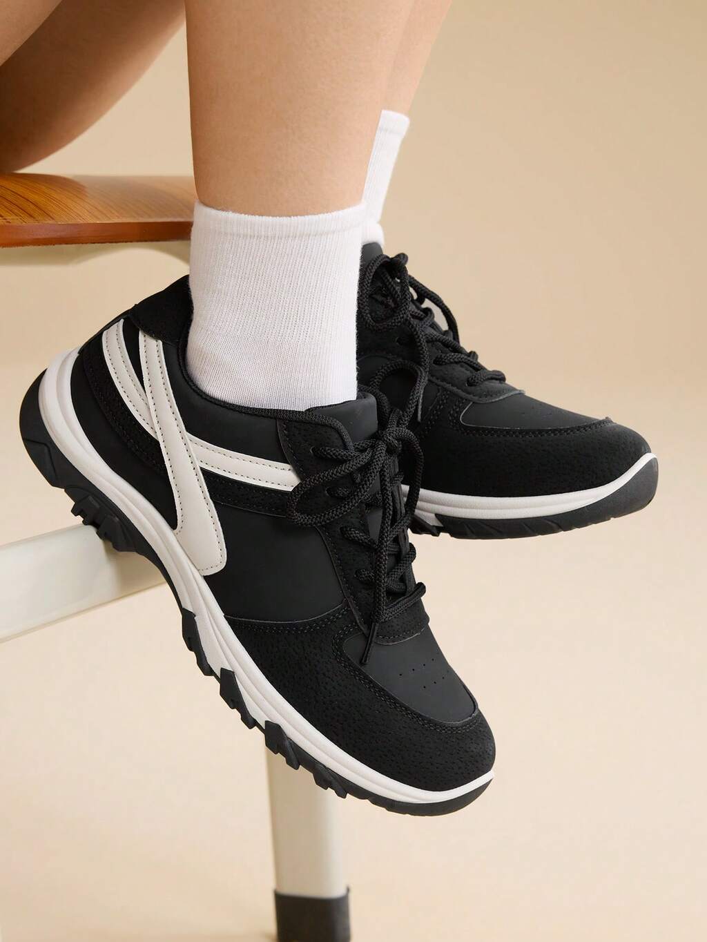 CUCCOO EASI Women's Fashionable Lace-Up Thick Sole Casual Shoes, Waterproof Platform Sneakers, Versatile For Spring & Autumn