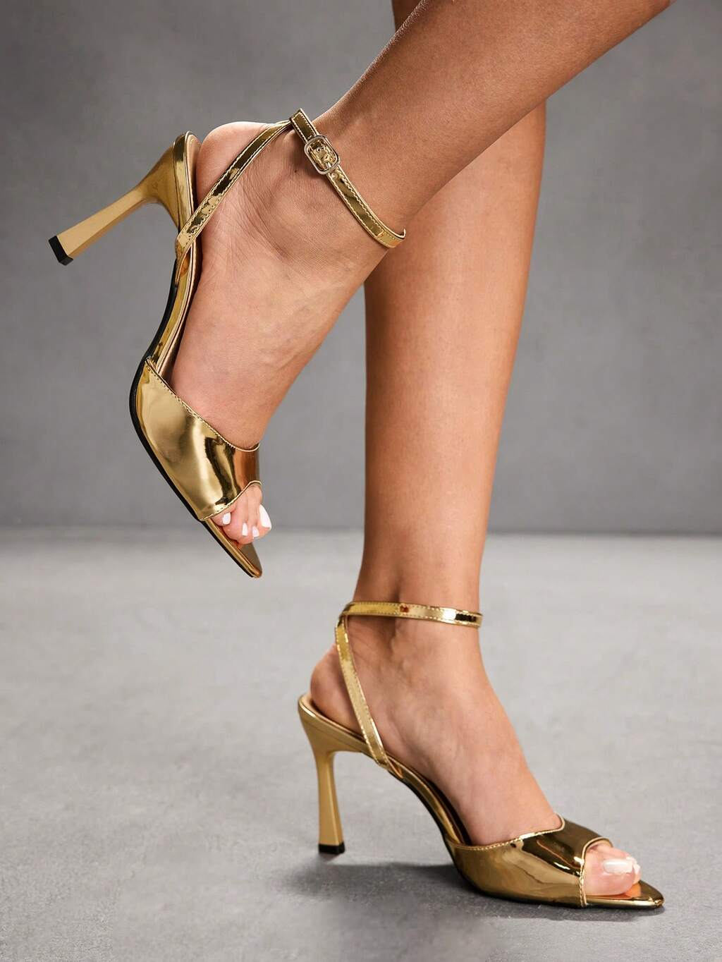 CUCCOO SZL Women Square Buckle Pointed Toe Slim High Heel Ankle Strap High Heel Sandals, Minimalist Fashion Pumps For Christmas Valentine's Day
