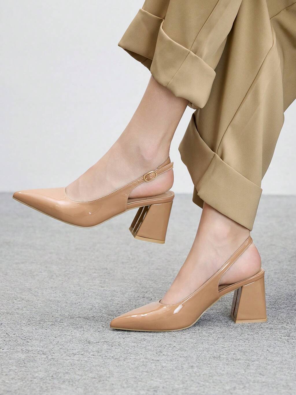 CUCCOO BIZCHIC Woman Shoes Pointed Toe Stiletto PU Leather Elegant Beige Slingback High Heels For Summer Graduation Heels Prom Heels Vacation Shoes Summer Elegant Basics Business Casual Business Chic Spring Shoes Spring Break Easter For Christmas Spring Shoes