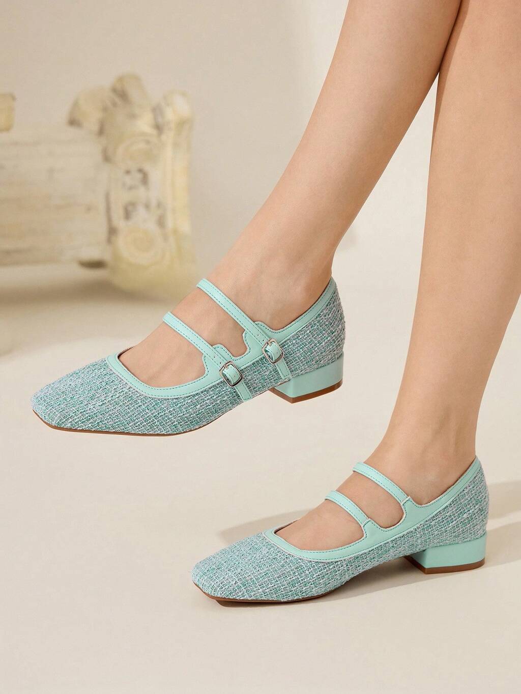 CUCCOO BASICS Women Shoes Square Toe Flat Bottom Apricot Knitted Simple Comfortable Breathable Women's Fashion Flat Sandals Slippers Daily Versatile Commuter Women's Slippers