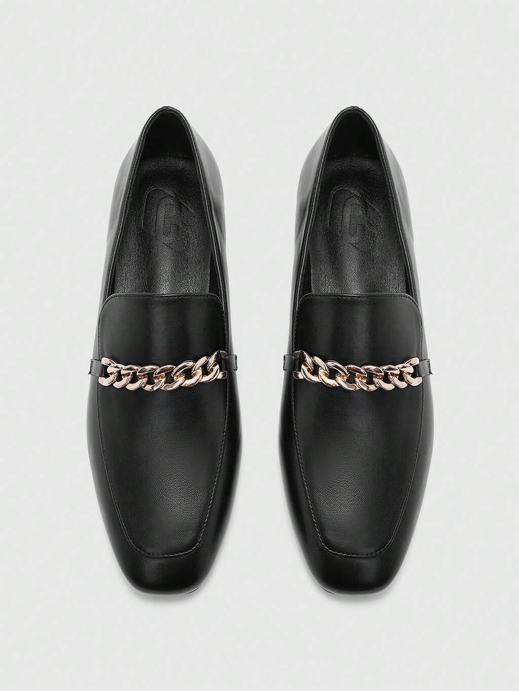CUCCOO BIZCHIC Women's Square Toe Flat Black Metal Buckle Slip-On Loafers, Lightweight & Comfortable For Commuting For Christmas Valentine's Day