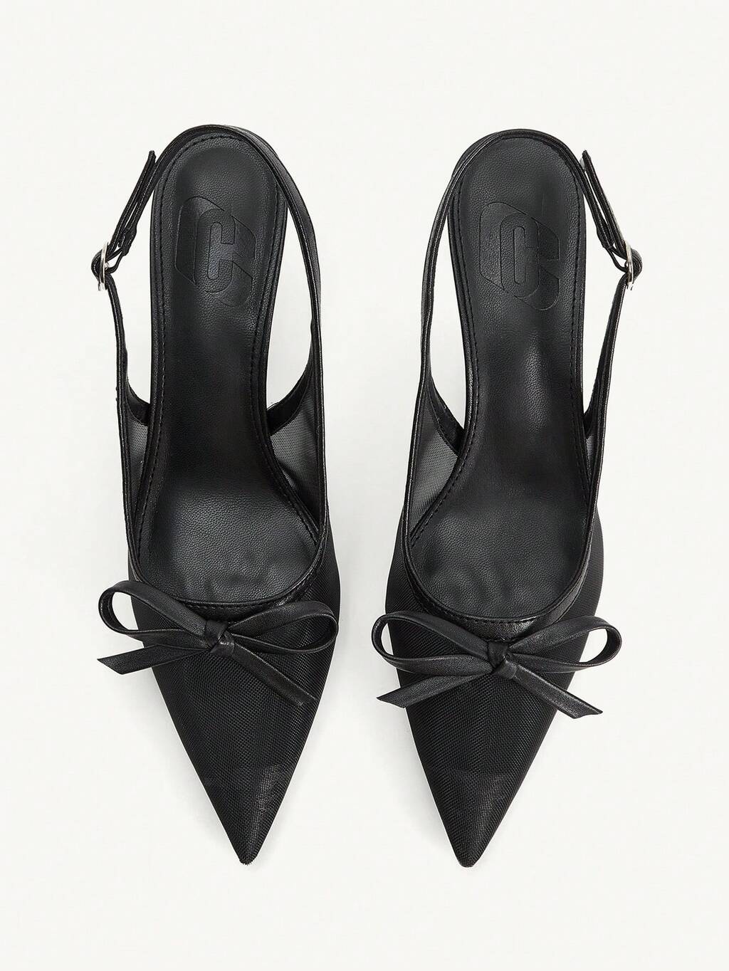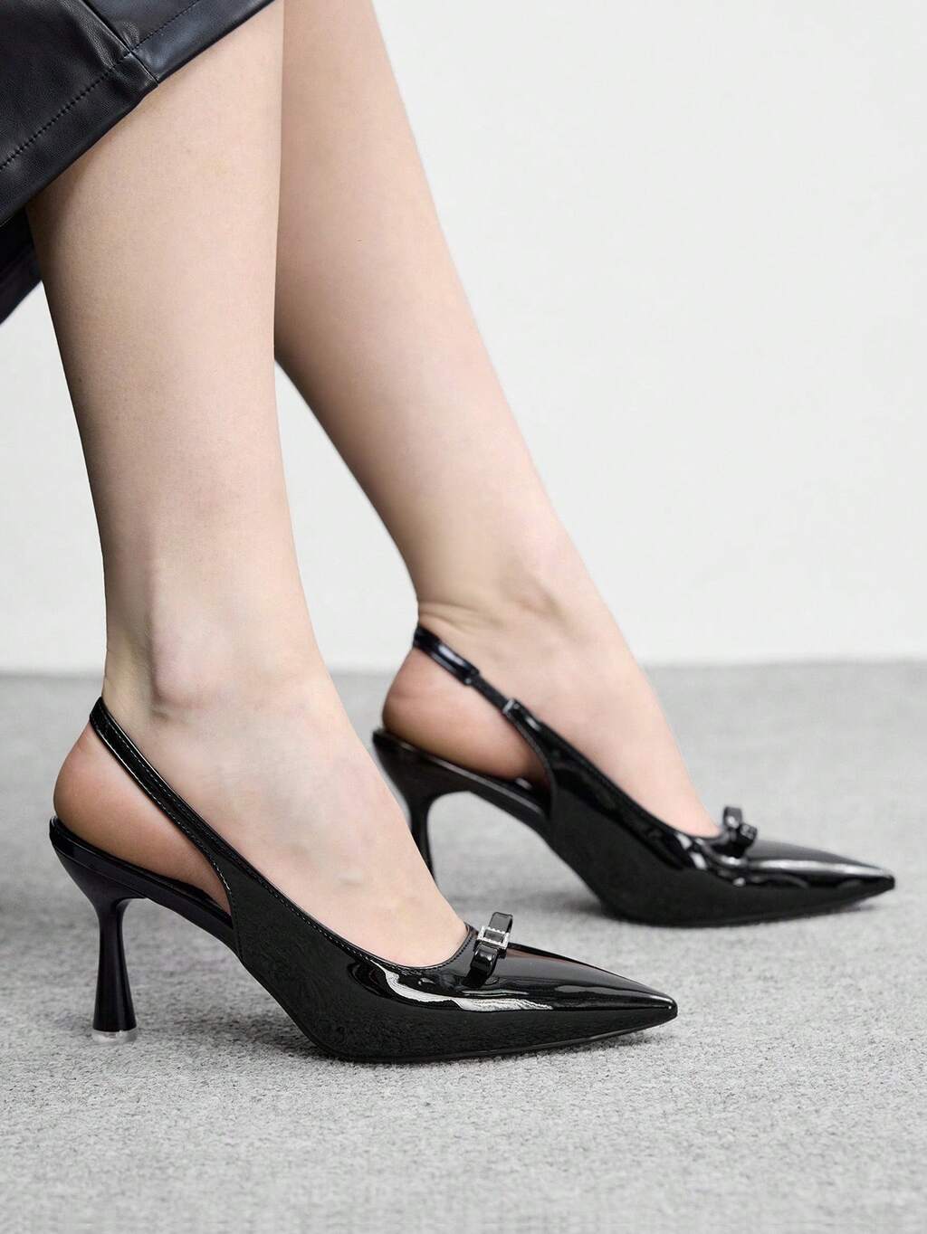 CUCCOO BIZCHIC Women Shoes Pointed Toe, Thin High Heel, Black Fashion Bow, Diamond Buckle, Simple Basic, Daily Versatile Commute To Work, Shopping, Women's High Heel Shoes, Slingback Shoes After Lifting, Women's Shoes Spring Shoes