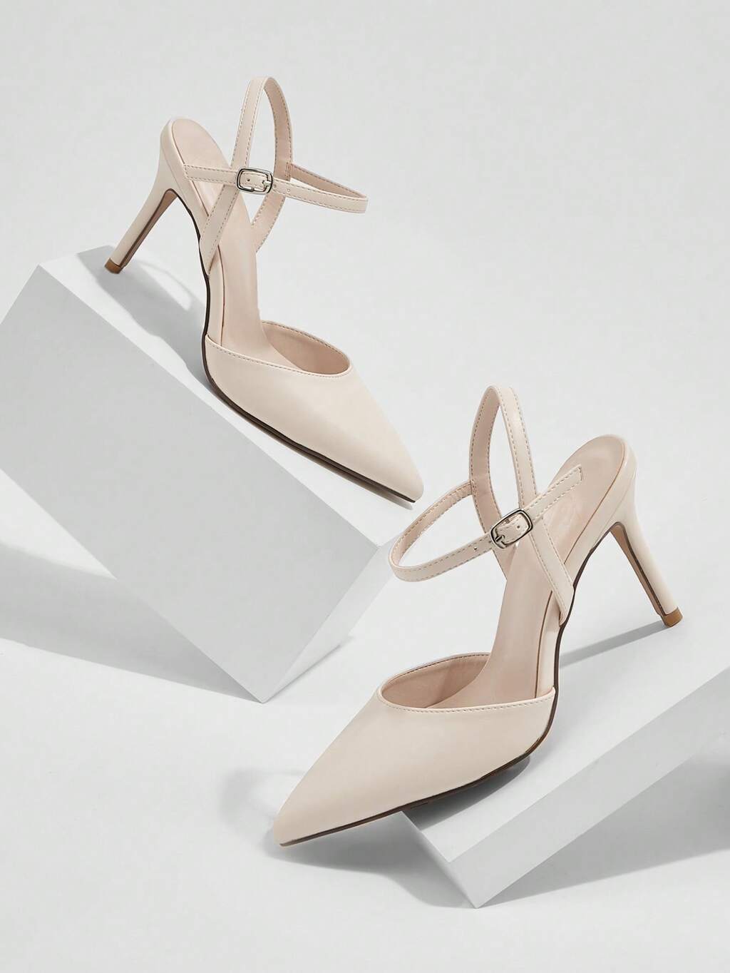 CUCCOO BIZCHIC Woman Shoes Point Toe Elegant Stiletto Heeled Ankle Strap Beige Pumps For Summer Graduation Heels Prom Heels Vacation Shoes Summer Elegant Basics Business Casual Business Chic Spring Shoes Spring Break Easter For Christmas Spring Shoes