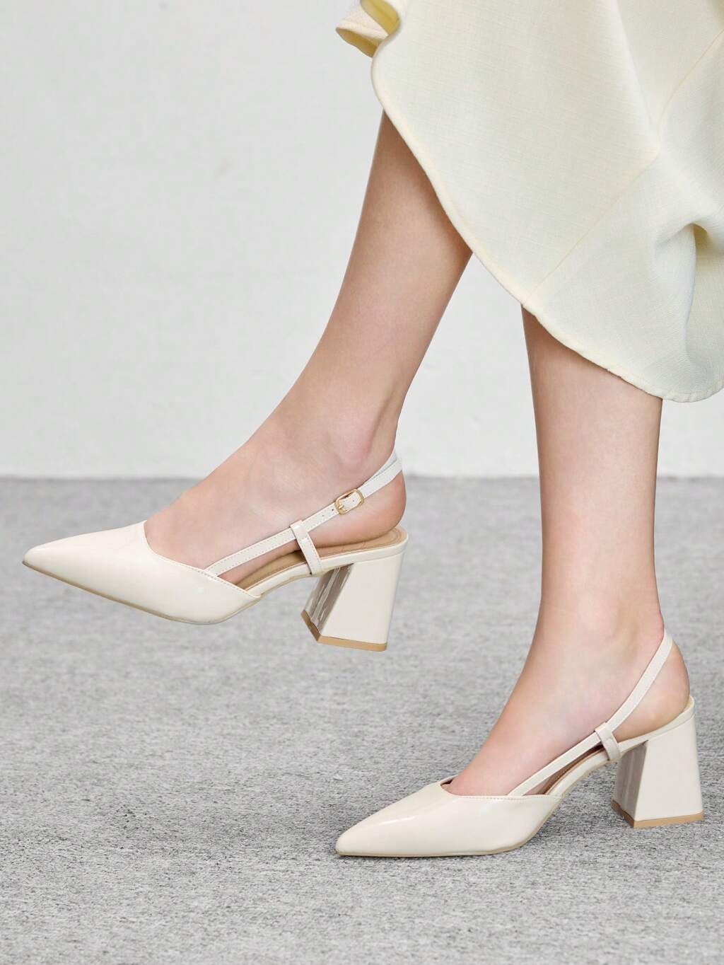 CUCCOO BIZCHIC Women's Fashion White Side Buckle Pointed Toe Backless High Heel Shoes, Stylish For Commuting, Dating, Party, Wedding, Holiday Spring Shoes Spring Break Easter For Christmas Spring Shoes