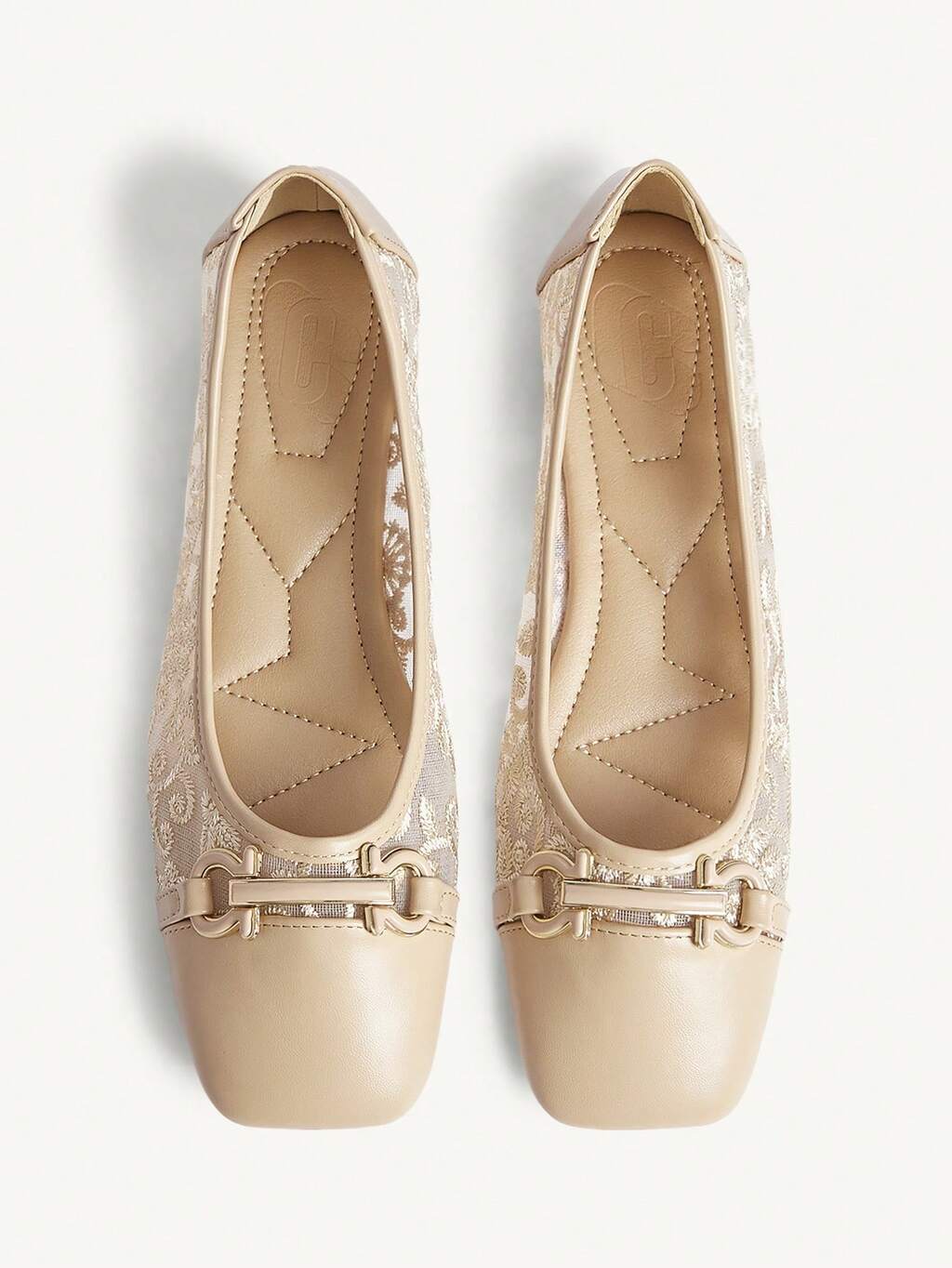 CUCCOO CHICEST Square Toe Loafers, Soft Sole, Mesh Patchwork, Buckle Decor, Fashionable Elegant Versatile Comfortable Slip-On Flat Apricot Shoes Wedding Shoes Spring Shoes Bride Shoes