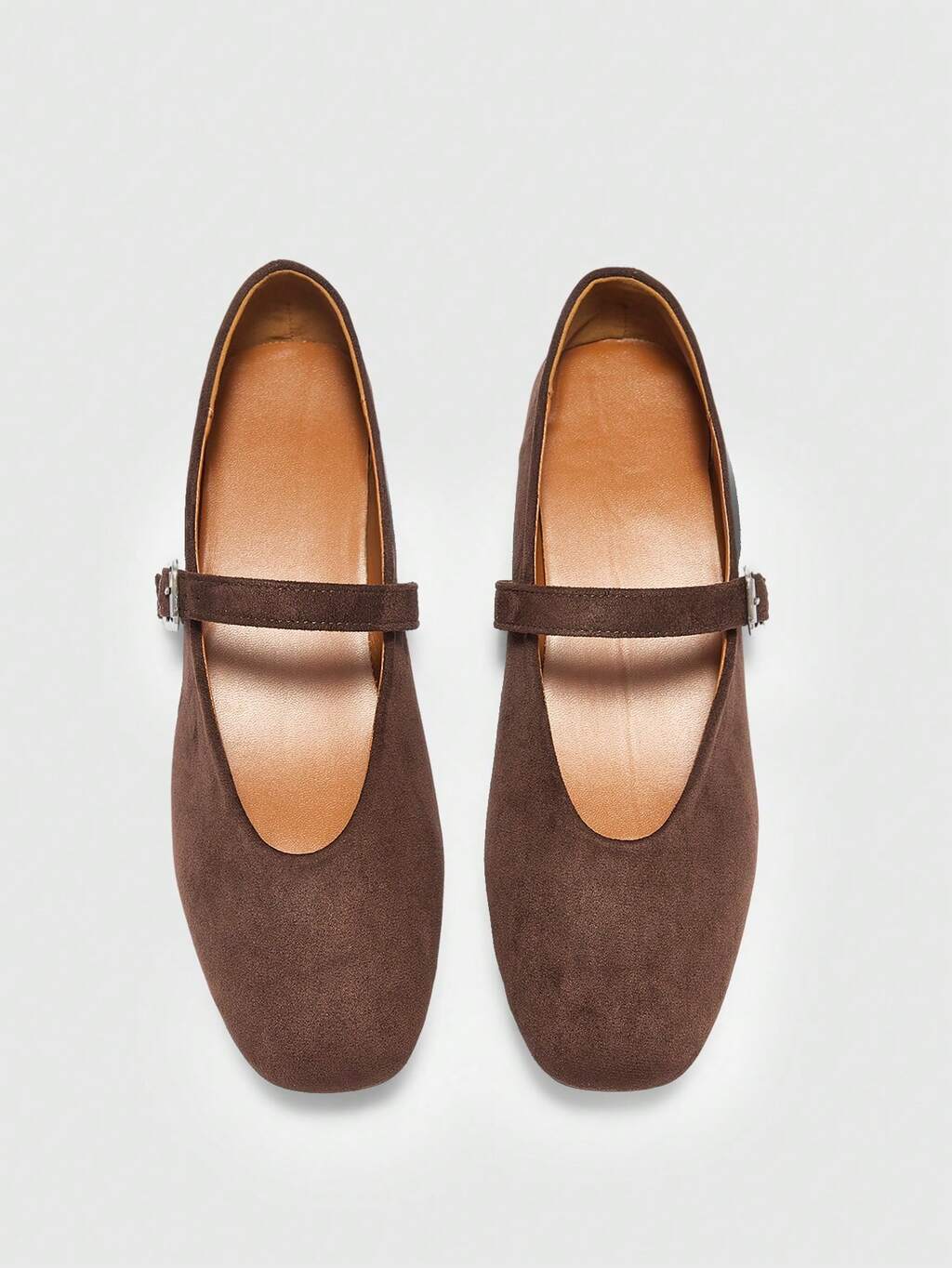 CUCCOO BIZCHIC Women's Round Toe Flat Shoes With Instep Strap, Comfortable Minimalist PU Leather Casual Shoes, Brown, Suitable For Daily Wear And Commuting