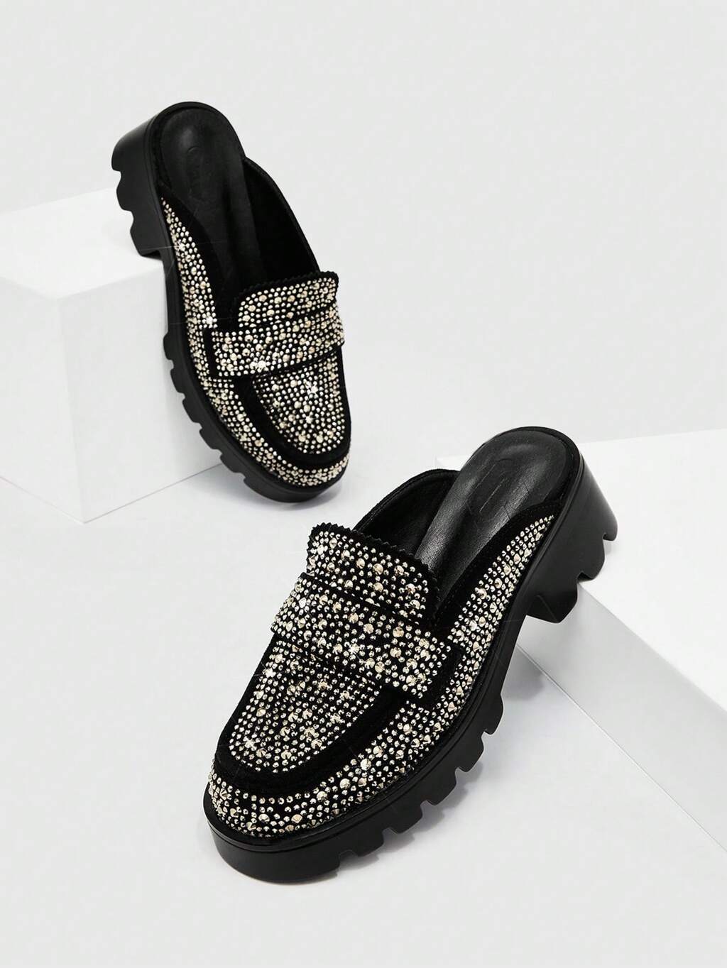 CUCCOO BIZCHIC Women Shoes Rhinestone Decor Fashion Black Glamorous Glass Court Wedges Day For Summer Vacation Shoes Summer Elegant Basics Business Casual Business Chic Spring Shoes Spring Break Easter For Christmas Valentine's Day Spring Shoes