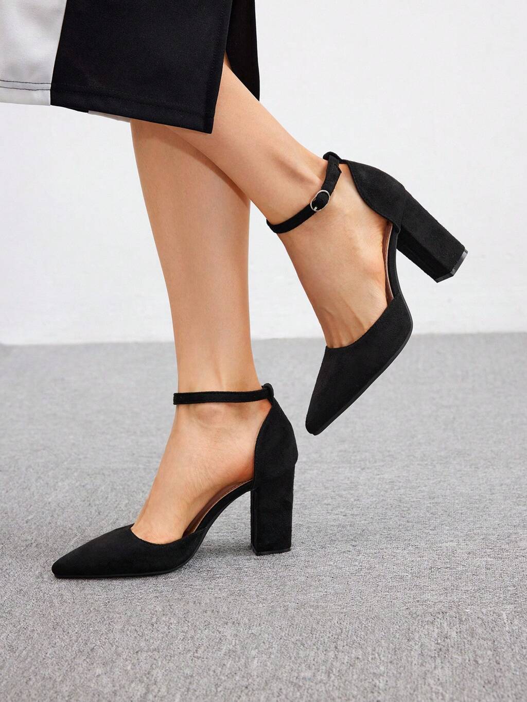 CUCCOO BIZCHIC Women's Fashionable Black Classic Ankle Strap High Heels With Pointed Toe, Thick Heels For Dressy Occasions Elegant Basics Business Casual Business Chic Spring Shoes Spring Break Easter For Christmas Spring Shoes