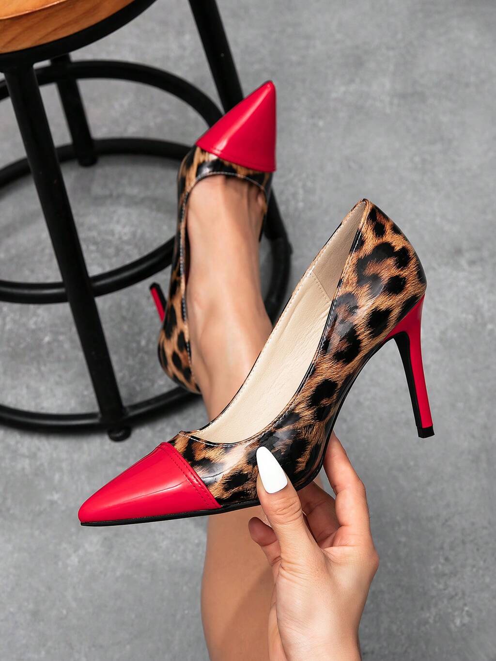 CUCCOO SZL Women's Fashion Pointed Toe Leopard Print Splicing Patent Leather High Heel Pumps Spring Shoes Spring Break Easter Prom Heels For Christmas Spring Shoes