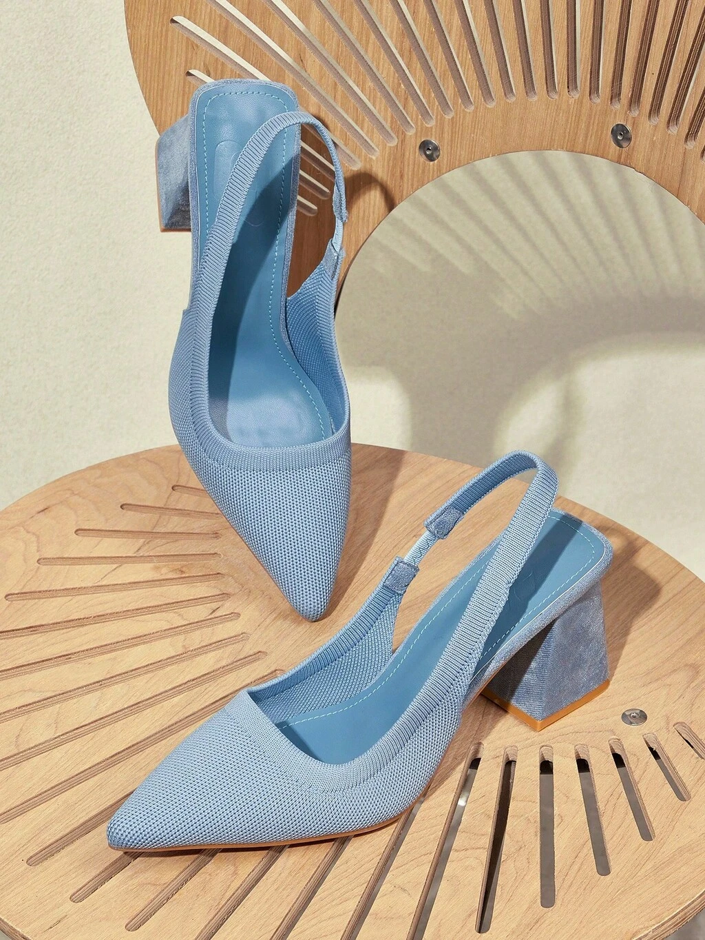 CUCCOO BASICS Women's Pointed Toe Chunky Heel Knitted Slip-On Shoes, Fashion Casual Style For Summer For Christmas Spring Shoes