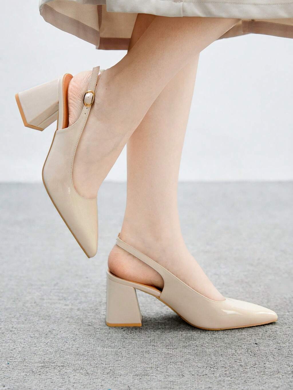 CUCCOO BASICS Apricot Color Fashion Pointed Toe Thick Heel Slingback Pumps For Women, Commuting, Dating, Party, Holiday Spring Shoes Spring Break Easter For Christmas Spring Shoes
