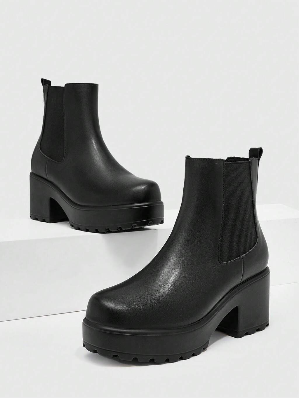 CUCCOO BIZCHIC Woman Shoes Fashion Minimalist Chunky Heeled Chelsea Elegant Classic Black Boots Vacation Shoes Summer Elegant Basics Business Casual Business Chic Spring Shoes Spring Break Easter For Christmas Spring Shoes