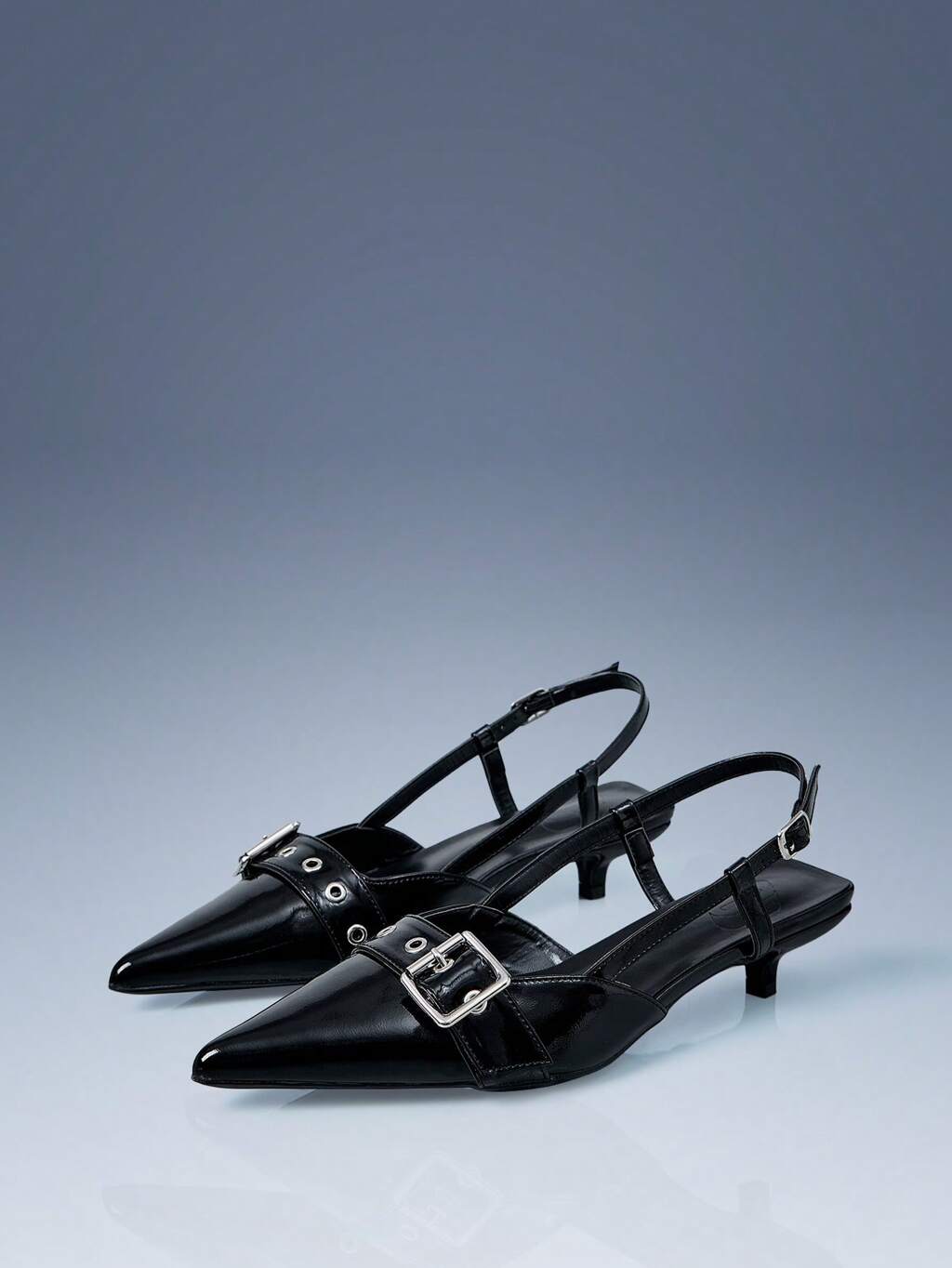 CUCCOO SZL Bombas de tacón de aguja con punta puntiaguda y sin respaldo con decoración de hebilla metálica para mujer
