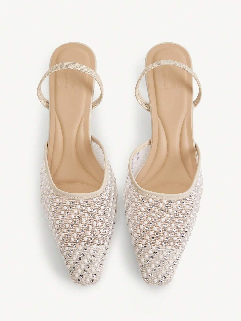 CUCCOO CHICEST Pearly Rhinestone Transparent Strap Apricot Pointed Toe High Heel Sandals, Sexy & Elegant Backless Ladies Shoes For Christmas Elegant Shoes Wedding Shoes Summer Shoes Bride Shoes