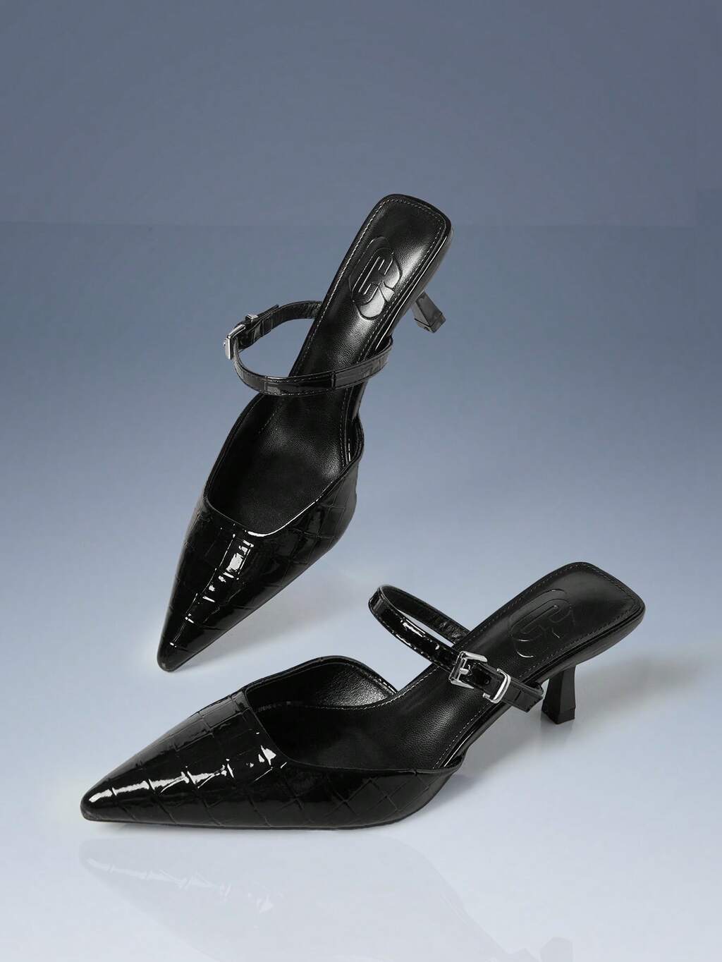 CUCCOO CURVES Women Shoes Wide Fit Fashion Pointed Stiletto Black Back Strap Buckle Simple Classic Daily Comfort Fattened High Heel Women's Shoes Women's Shoes Plus Size