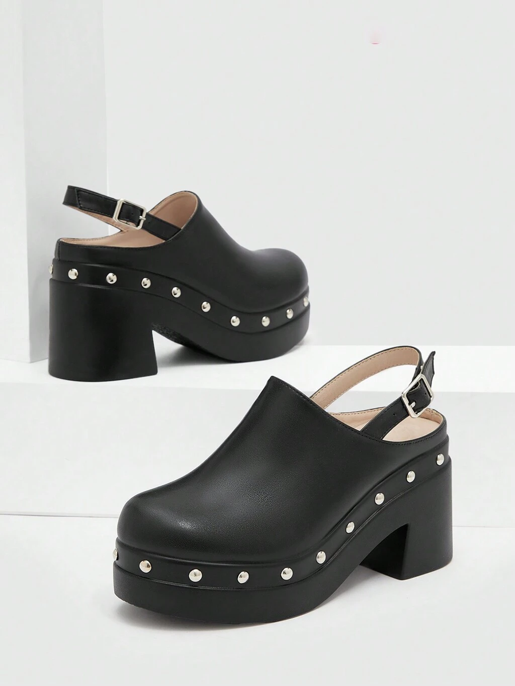 CUCCOO BIZCHIC Women's Fashion Black Back Strap Thick Heel Pointed Toe PU Leather Commuter, Date, Party, Vacation Pumps Spring Shoes Spring Break Easter For Christmas Spring Shoes