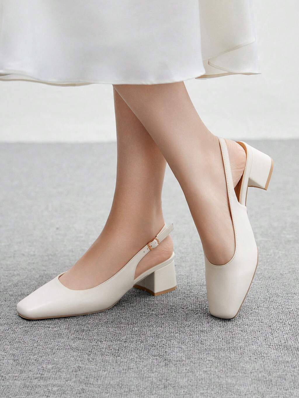 CUCCOO BASICS Women's Fashion Fabric Backstrap Chunky Heel Pointed Toe Commuter Slingback Shoes, Suitable For Dates, Parties, And Vacations For Christmas Spring Shoes