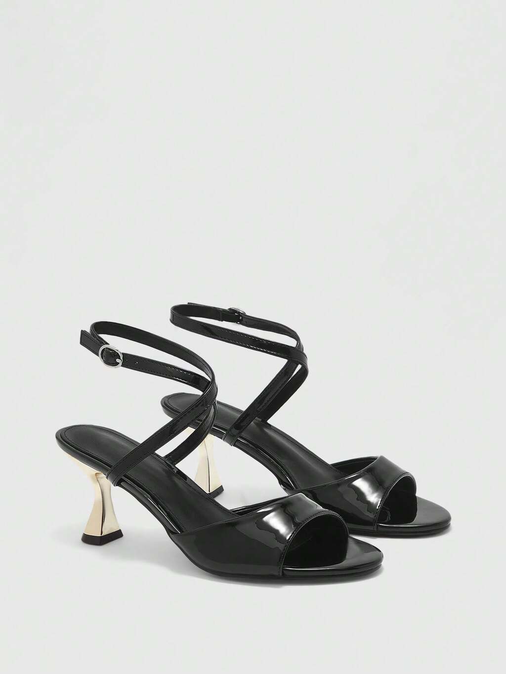 CUCCOO SZL Punk Style Metal Buckle Pointed Toe Patent Leather Sandals, Suitable For Street Style, Party And Other Occasions Prom Heels