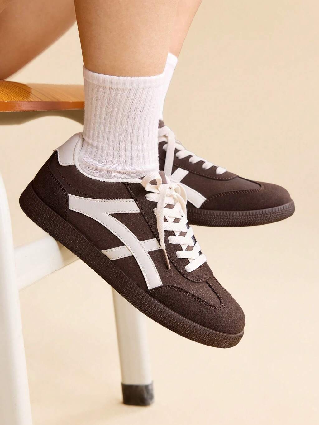 CUCCOO EASI Women's Lace-Up Splicing Round Toe Flat-Bottomed Casual Sneakers Slippers Comfortable Daily Outdoor Casual PU Leather Gray White Casual Sneakers Daily Outdoor