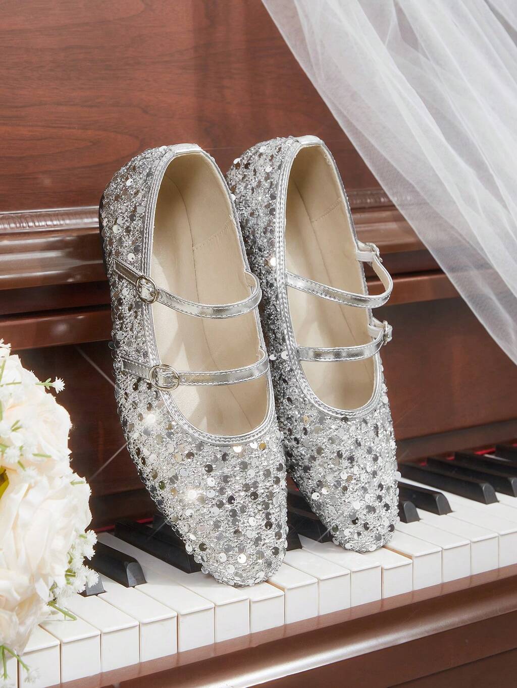 CUCCOO HITCHD Women's Sequin Slip-On Shoes, Spring New Slouchy Shoes With One-Buckle Sequin Low Vamp Casual Soft Bottom Square Toe Shoes Summer Shoes Wedding Shoes Bride Shoes