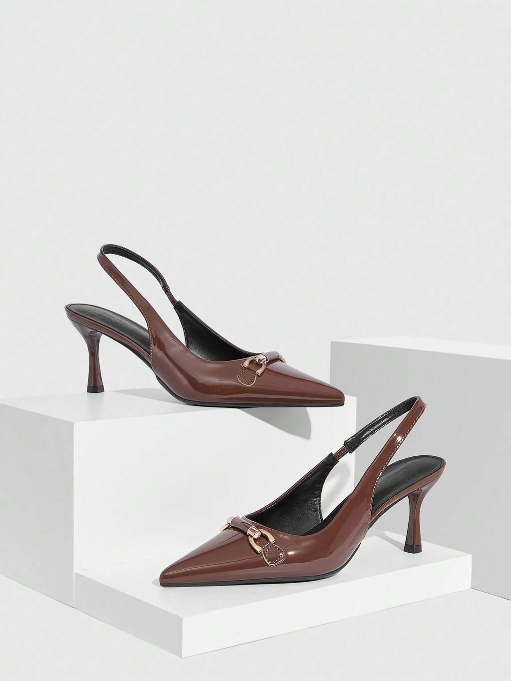 CUCCOO SZL Women's High Heels Brown Pointed Toe Back Top Buckle Adjustable 9CM Women's Elegant Stiletto Mirror PU Material Metal Bamboo Buckle Decoration Brown High Heels Fashionable Versatile Suitable For Daily/Party/Christmas Valentine's Day Dating/Commuting/Formal Women's Shoes