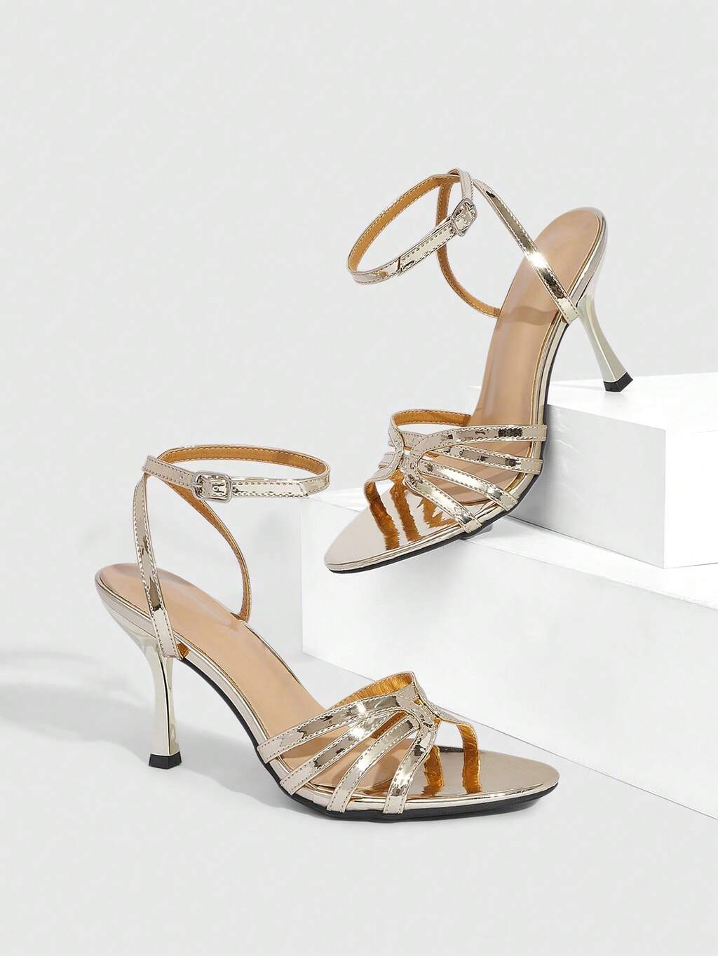 CUCCOO SZL Women Shoes Spring And Summer New Apricot Mirror Cross With Ankle Strap Simple Women's High-Heeled Sandals Fashionable And Comfortable Versatile Sexy Party Banquet Women's Sandals Prom Heels Summer Shoes