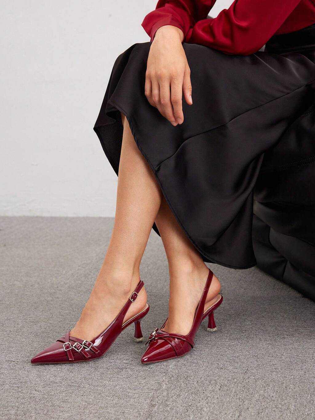CUCCOO BIZCHIC Zapatos de mujer de tacón alto y puntiagudo, con correa de tobillo en color burdeos. Zapatos de tacón alto sencillos, de moda, sexy, para fiestas y banquetes. Zapatos de mujer de primavera.
