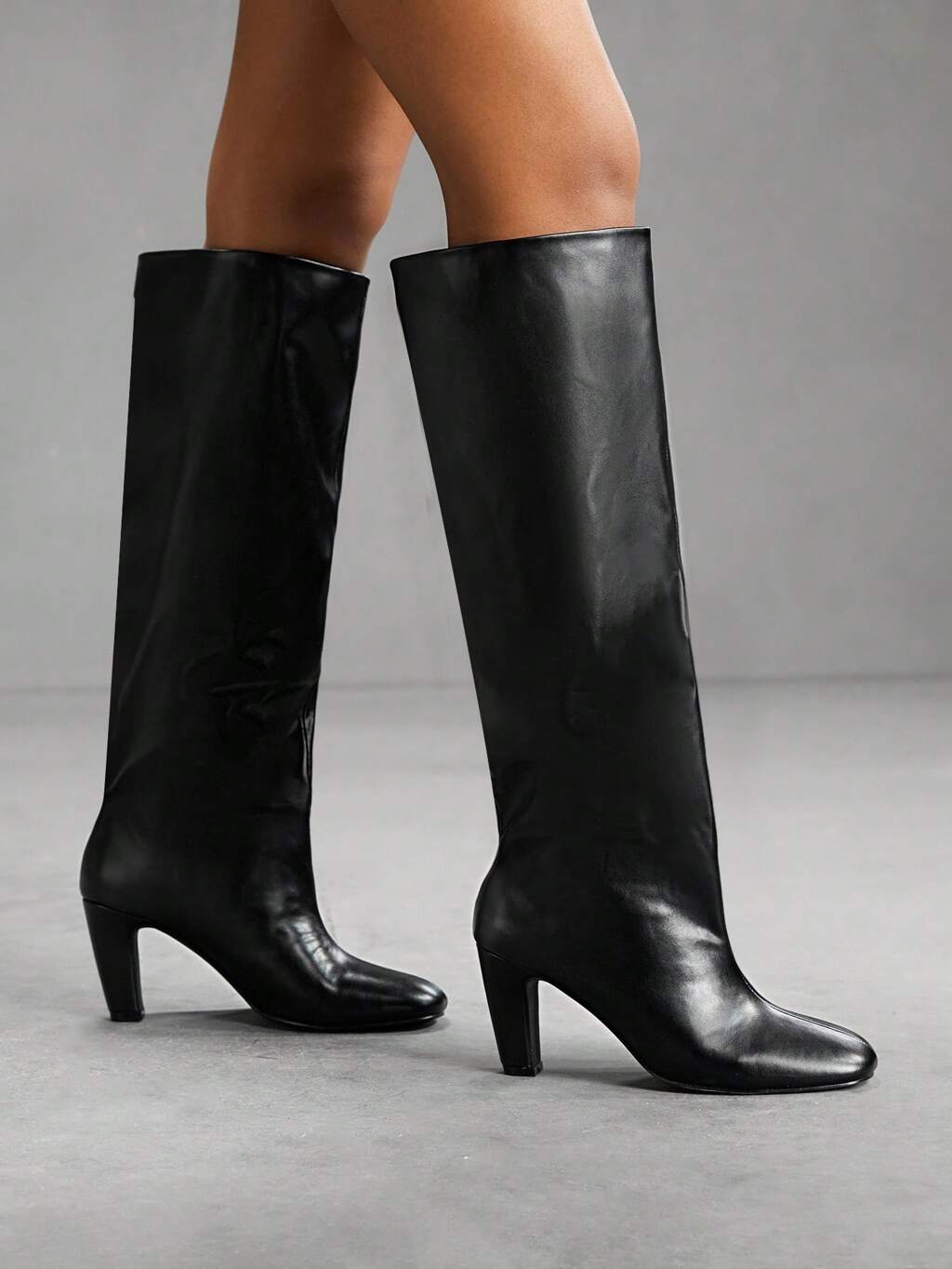 CUCCOO BIZCHIC Botas de caña media con tacón bajo y grueso de estilo minimalista clásico de piel sintética negra para mujer