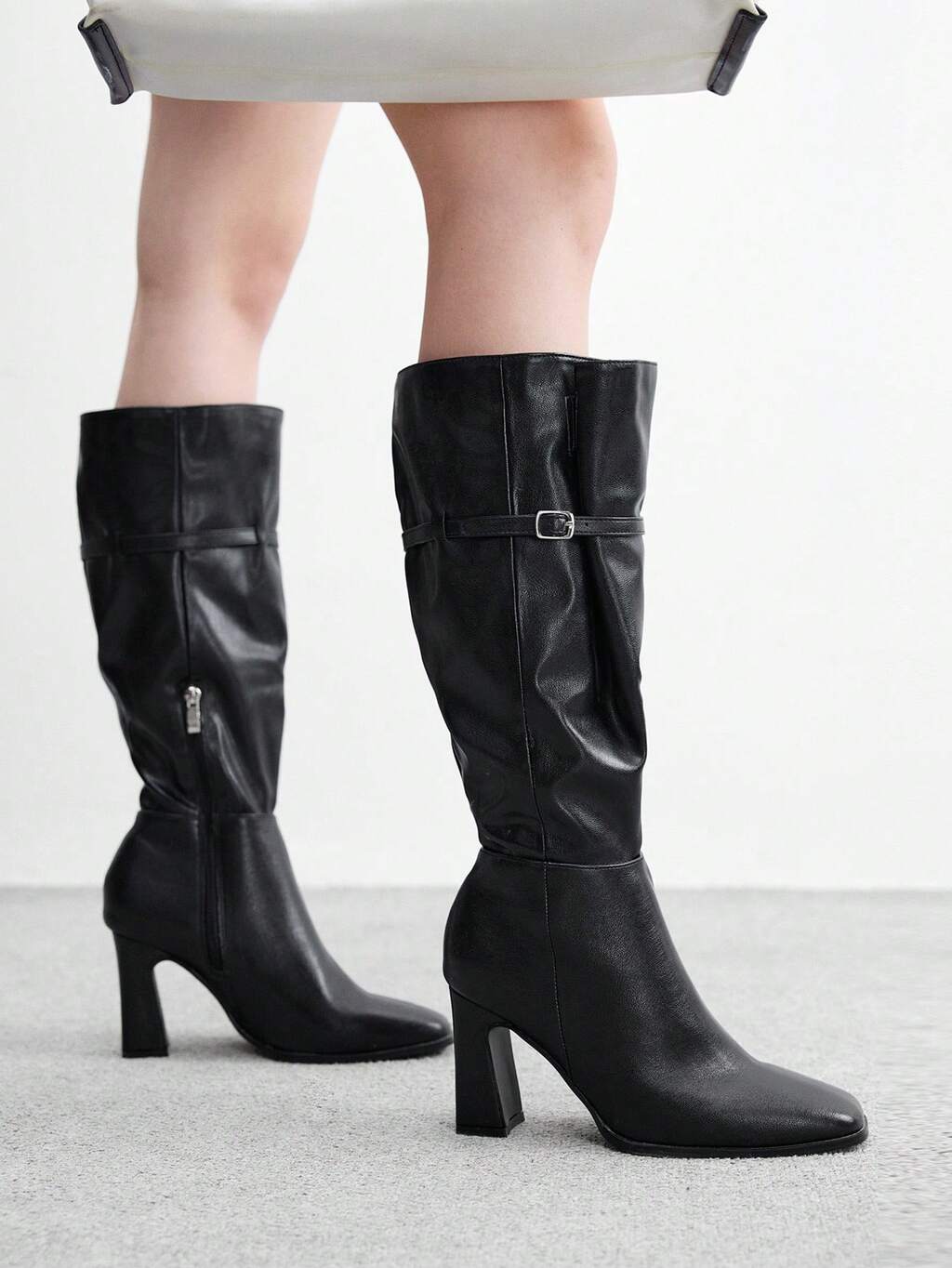 CUCCOO CHICEST Botas de tacón alto de punta puntiaguda con hebilla, versátiles para el uso diario de las mujeres