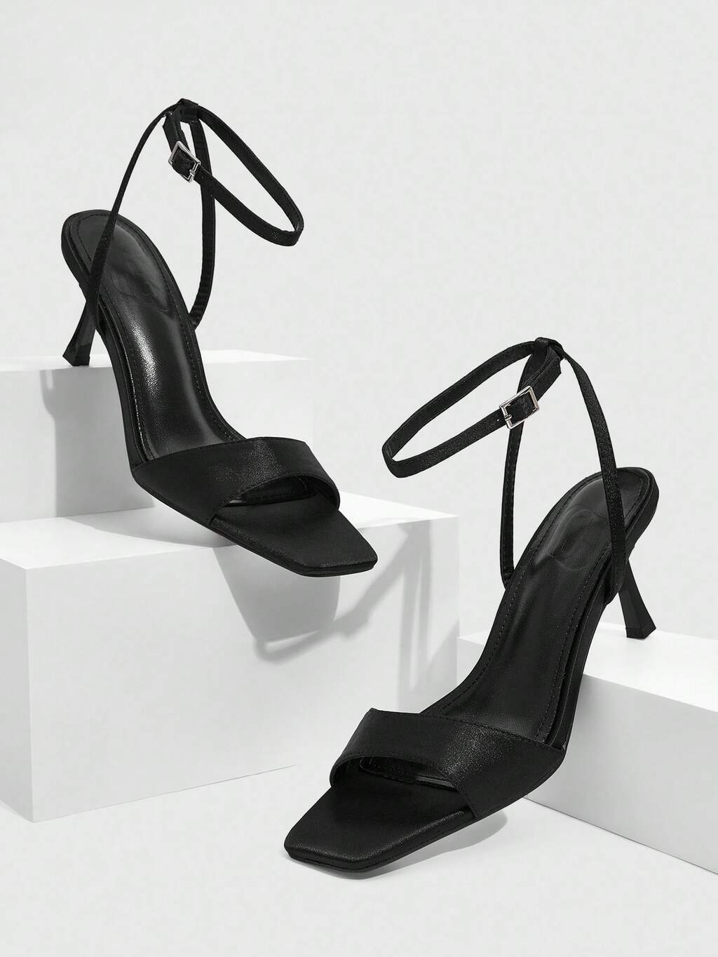 CUCCOO BIZCHIC Sandalias de tacón alto para mujer con punta redonda, tira de tobillo negra, diseño simple y elegante. Sandalias versátiles y cómodas para uso diario con faldas.