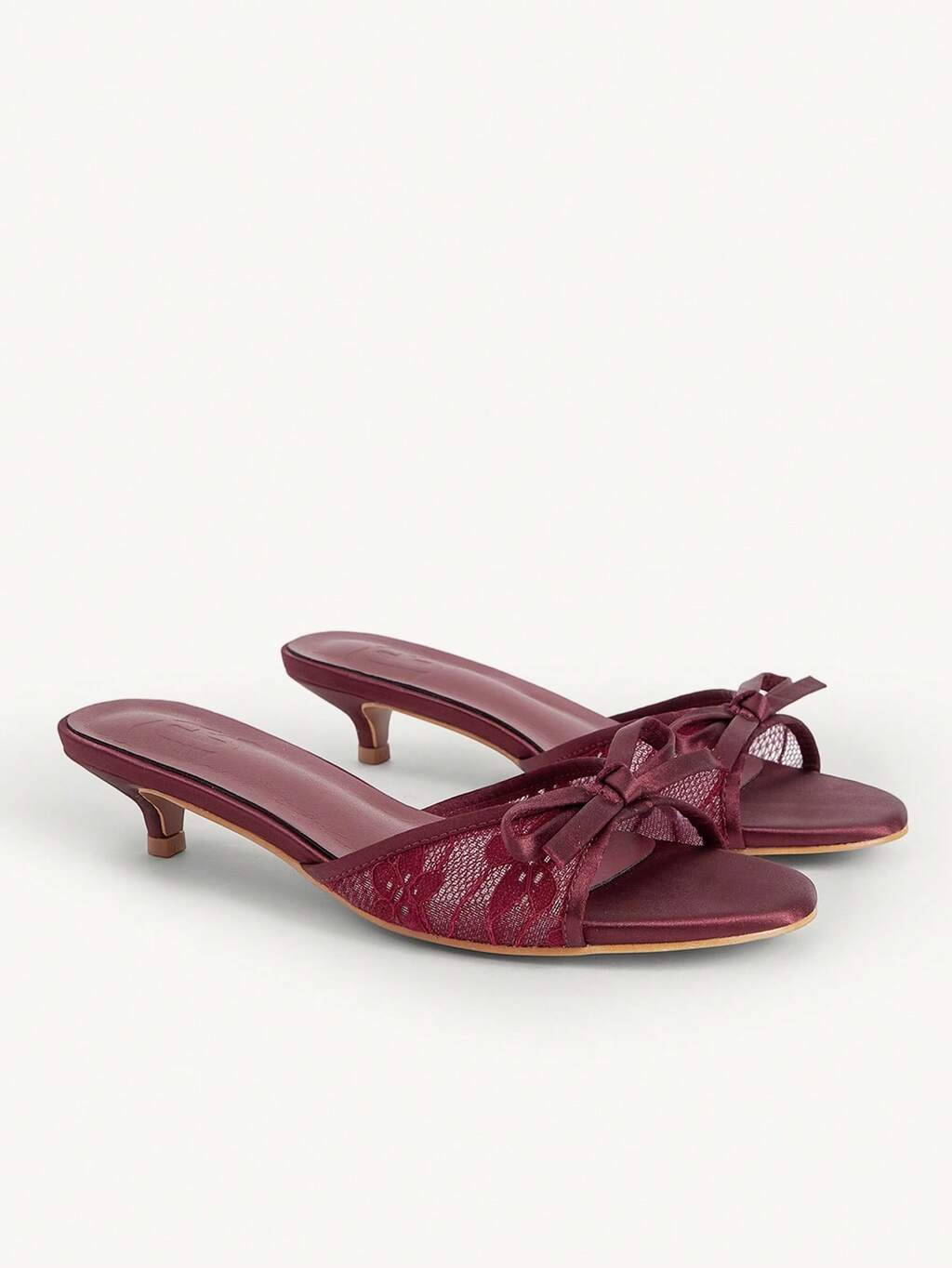 CUCCOO CHICEST Zapatos de tacón de gatito de punta abierta con decoración de lazo de encaje transparente, elegantes y versátiles para el transporte