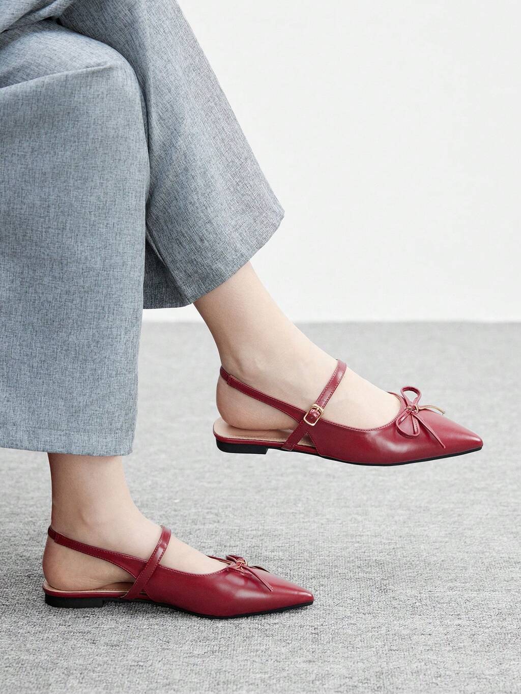 CUCCOO BIZCHIC Zapatos de mujer con punta afilada, de cuero suave, tipo slip-on, con lazo vintage para el Día de San Valentín
