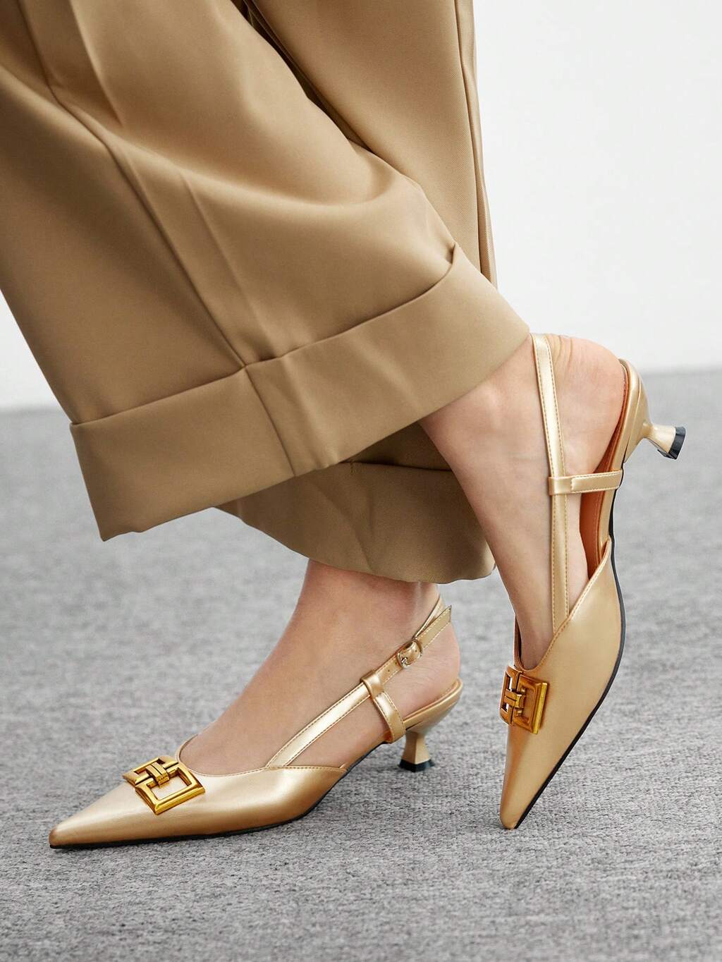 CUCCOO CHICEST Sandalias con tira en el dedo de puntera cuadrada color oro y tacón fino alto sencillo para vestido de fiesta