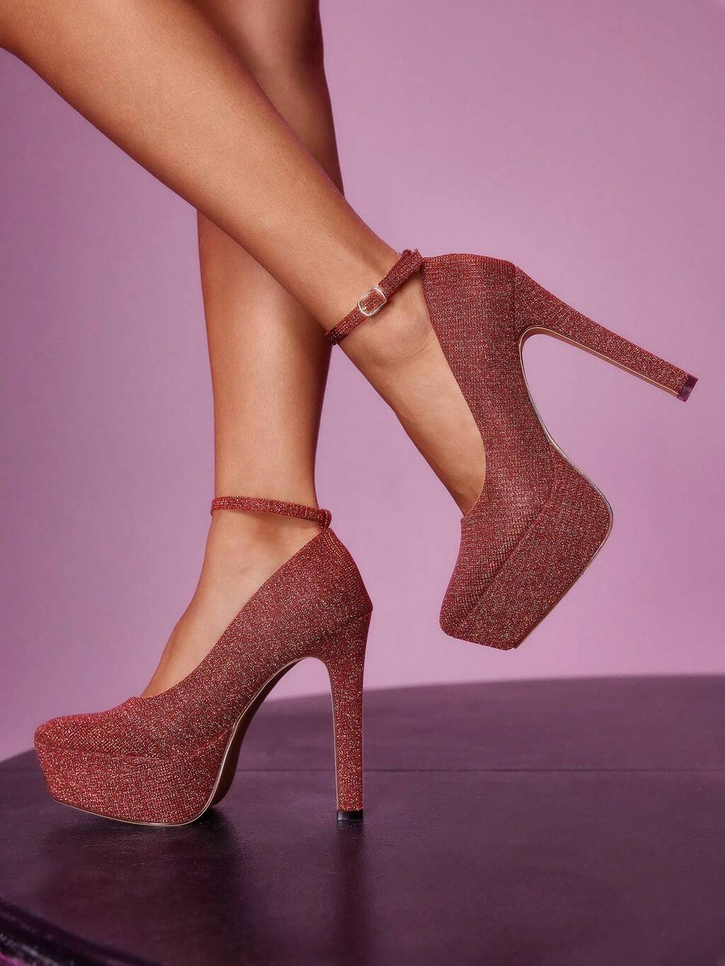 CUCCOO LuxiPop Zapatos de tacón alto con diseño de hebilla y suela gruesa, glamorosos y de moda, adecuados para Navidad, Acción de Gracias, fiestas de Año Nuevo y atuendos de discoteca