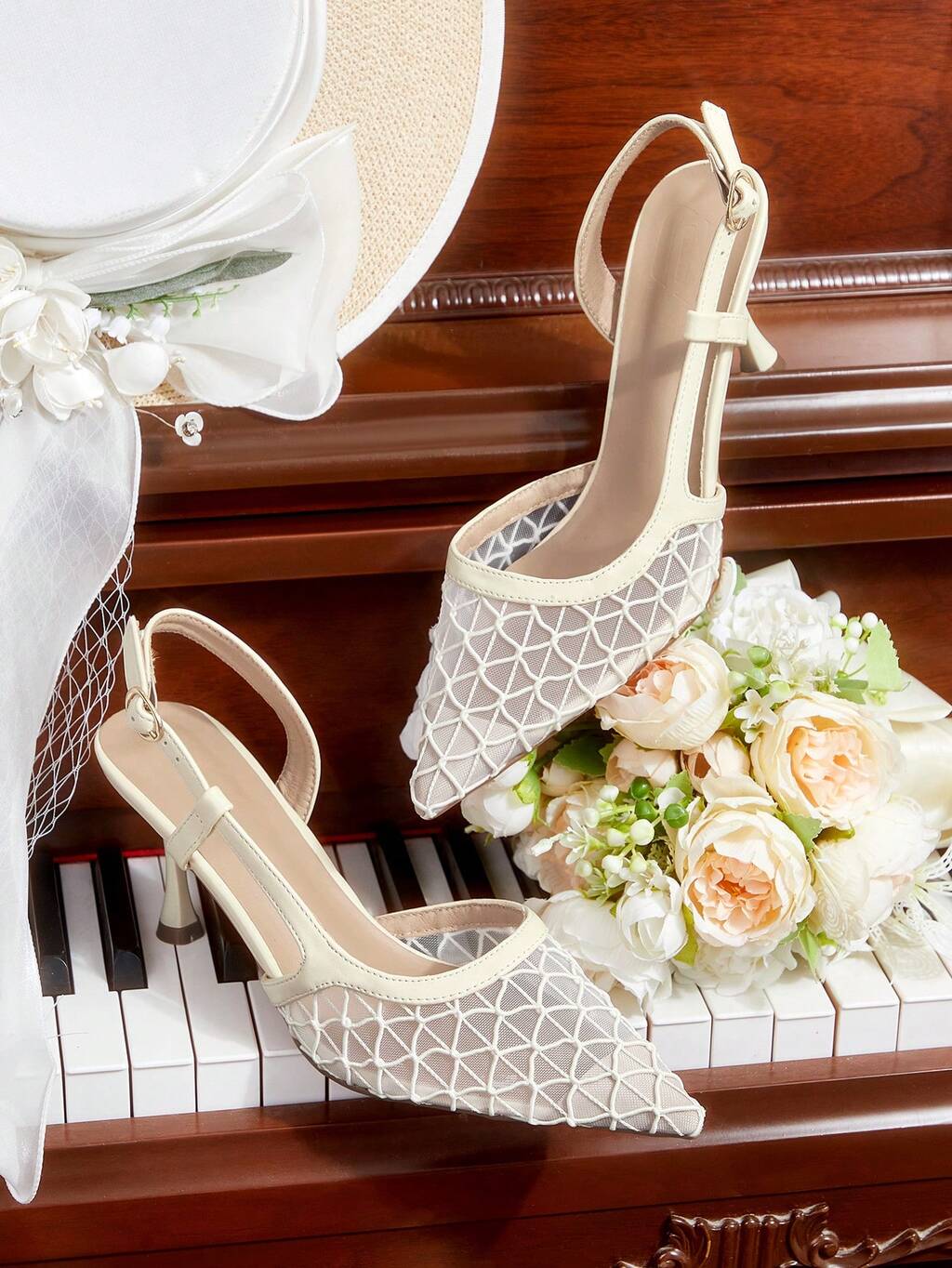 CUCCOO CHICEST Zapatos de tacón de punta fina con malla bordada elegantes y de moda para mujer