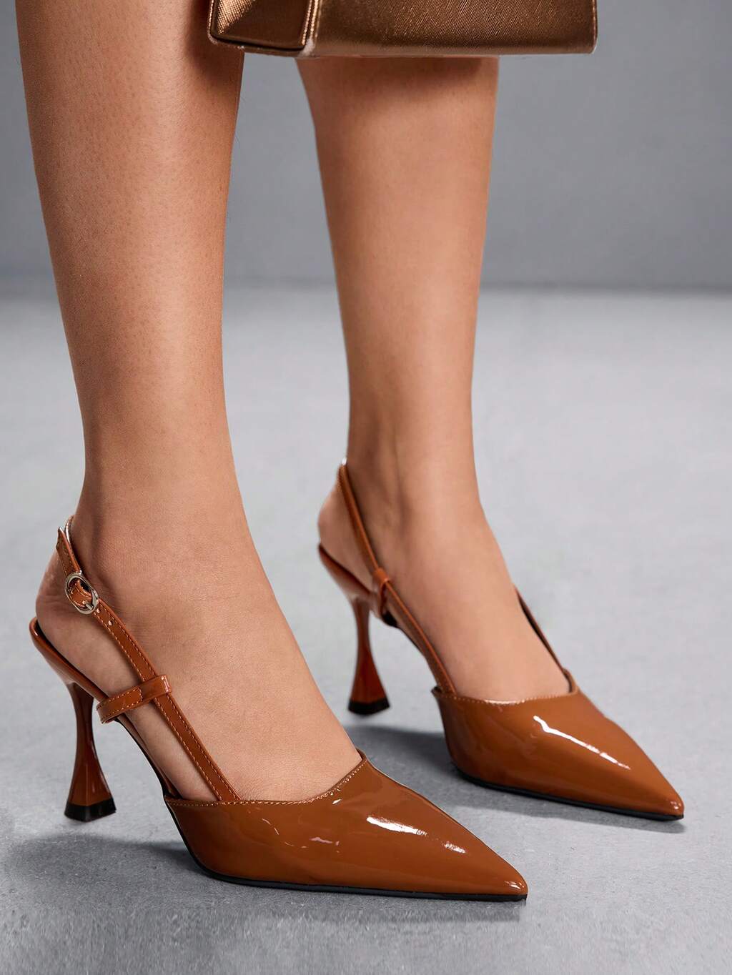 CUCCOO BASICS Zapatos de tacón alto de moda casual con diseño de hebilla y punta puntiaguda para mujer