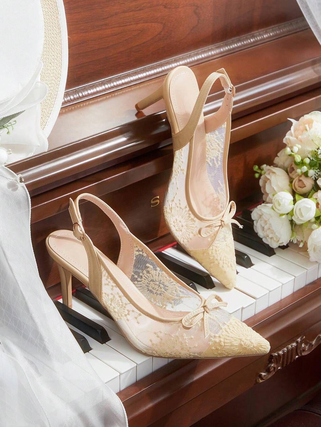 CUCCOO HITCHD Zapatos de tacón elegantes para fiesta de mujer con bordado, malla y decoración de lazo