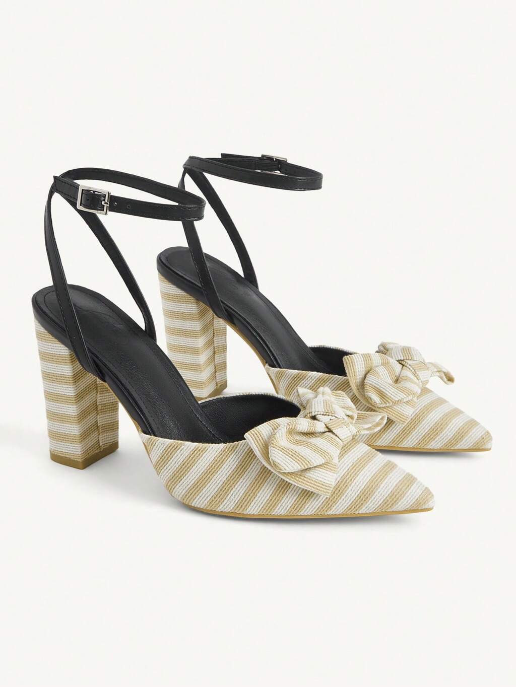 CUCCOO CHICEST Zapatos de mujer con temperamento, tacones altos puntiagudos con lazo a rayas, zapatos versátiles para mujer