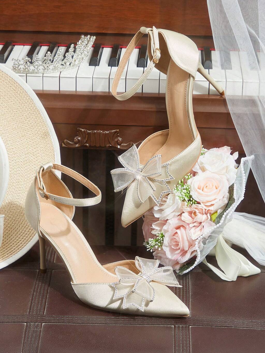 CUCCOO HITCHD Stilettos con lazo dorado fashionable y elegantes, adecuados para Año Nuevo, Día de San Valentín, Novia, Fiesta, Boda, Citas, Vacaciones y otras ocasiones. Zapatos de primavera, vacaciones de primavera, tacones de graduación