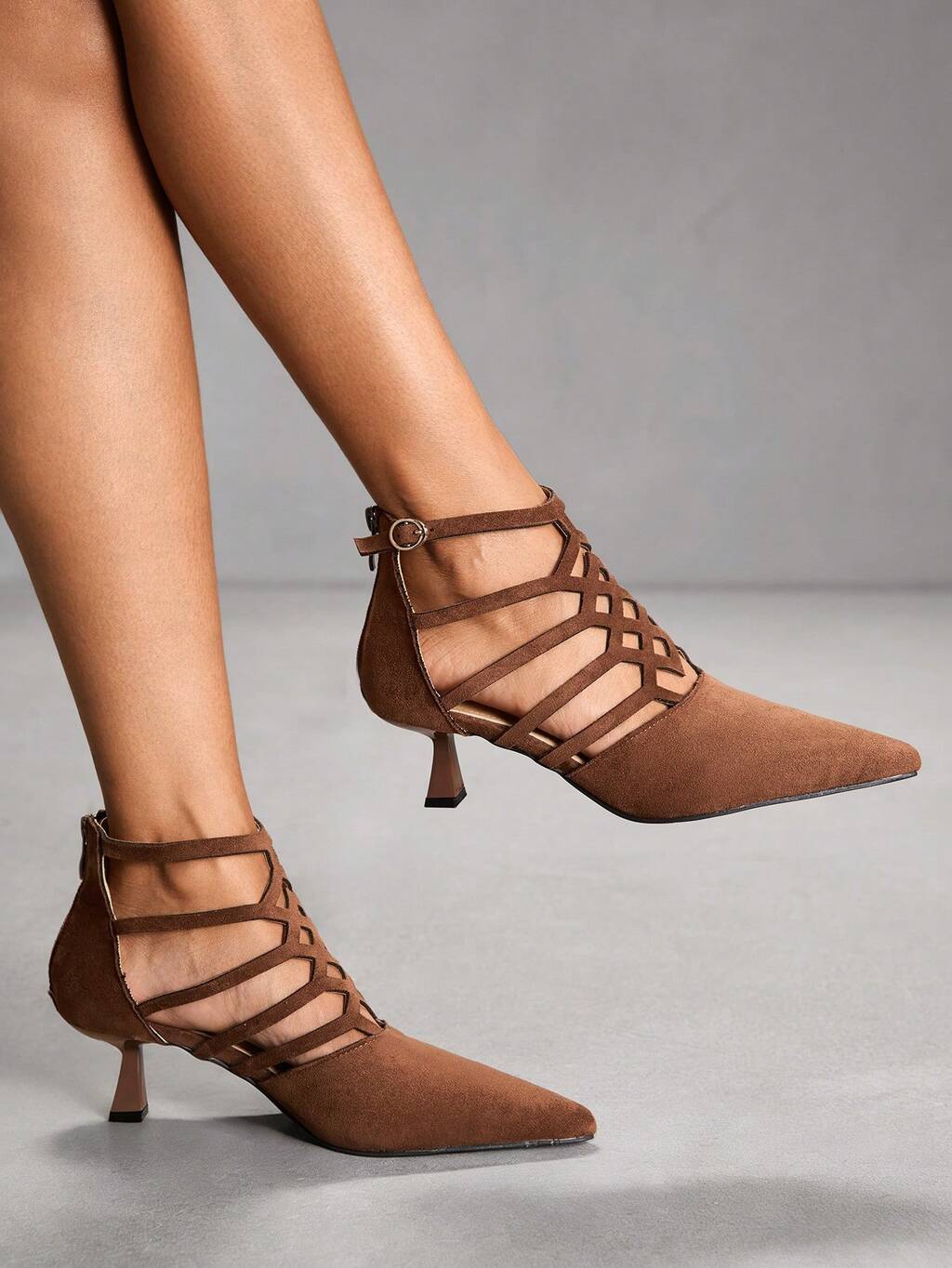 CUCCOO SZL Zapatos de mujer con diseño calado, zapatos de tacón alto puntiagudos, zapatos de tacón alto de ante sintético marrón sexy para fiesta, citas y uso diario