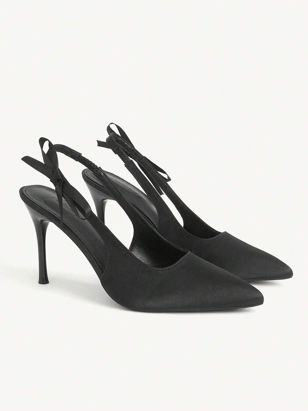 CUCCOO CHICEST Zapatos de mujer nuevos de tacón alto de satén negro, de punta cerrada, sexy al estilo francés, de tacón de aguja, con lazo, elegantes para vestidos de fiesta, boda y eventos