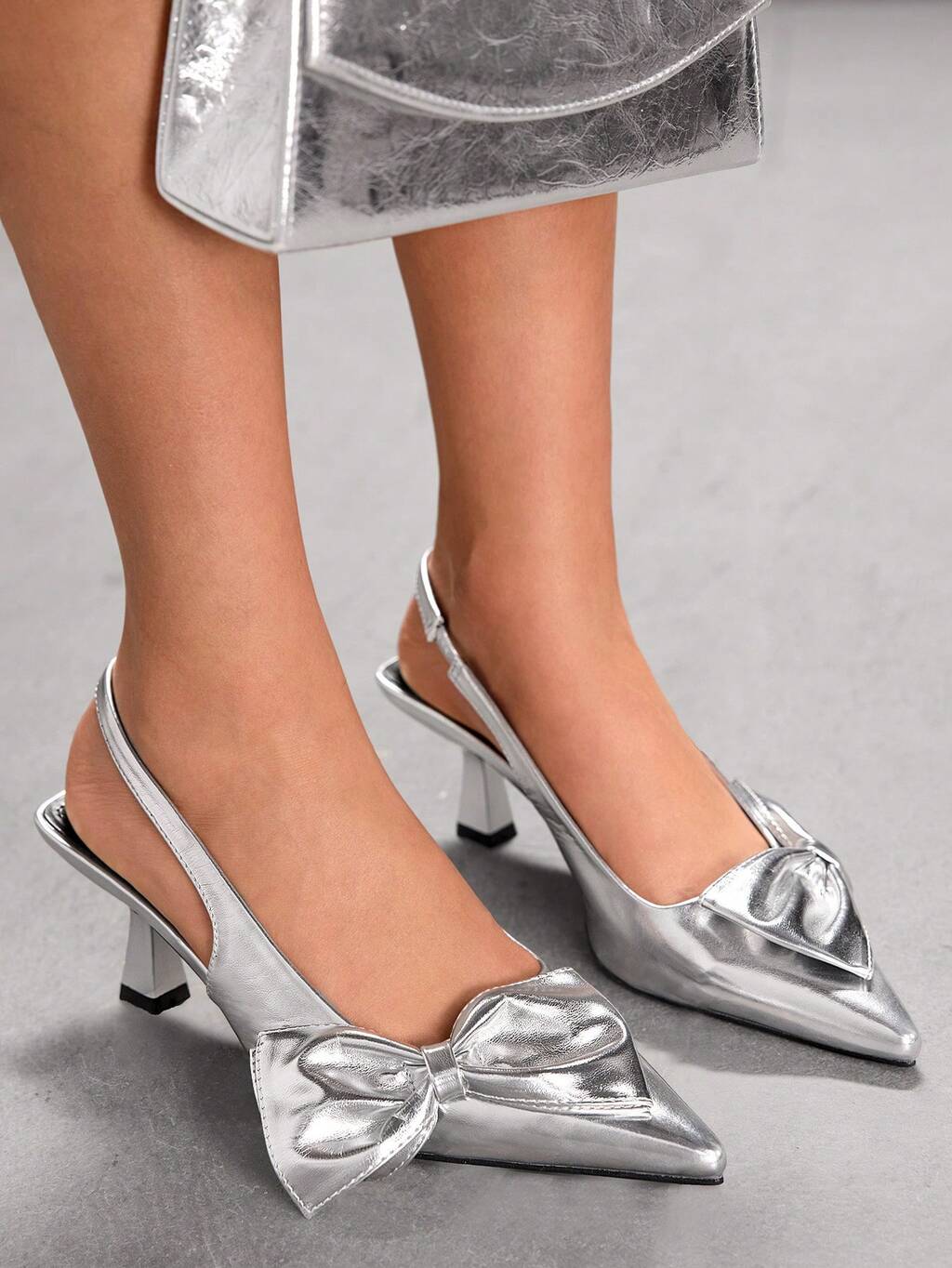 CUCCOO CHICEST Tacones de moda con punta puntiaguda y decoración de lazo, adecuados para ocasiones diarias y de fiesta, con un toque navideño y de Año Nuevo para otoño e invierno