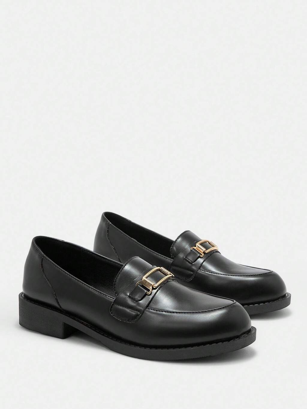 CUCCOO CURVES Zapatos planos de ajuste ancho, zapatos casuales de suela gruesa y sin cordones de estilo universitario en color negro