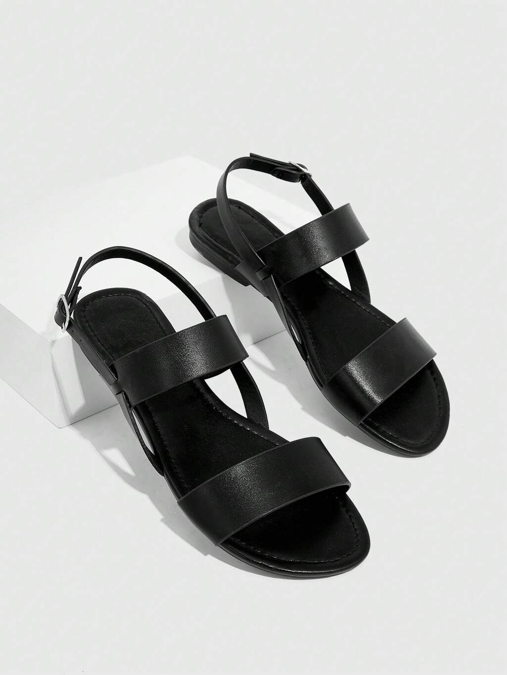 CUCCOO BIZCHIC Sandalias de tiras dobles cómodas y elegantes de PVP reducido para mujer, negras, tipo slingback, para vacaciones de verano, elegantes básicas para negocios casuales, negocios elegantes, Navidad, otoño y Año Nuevo