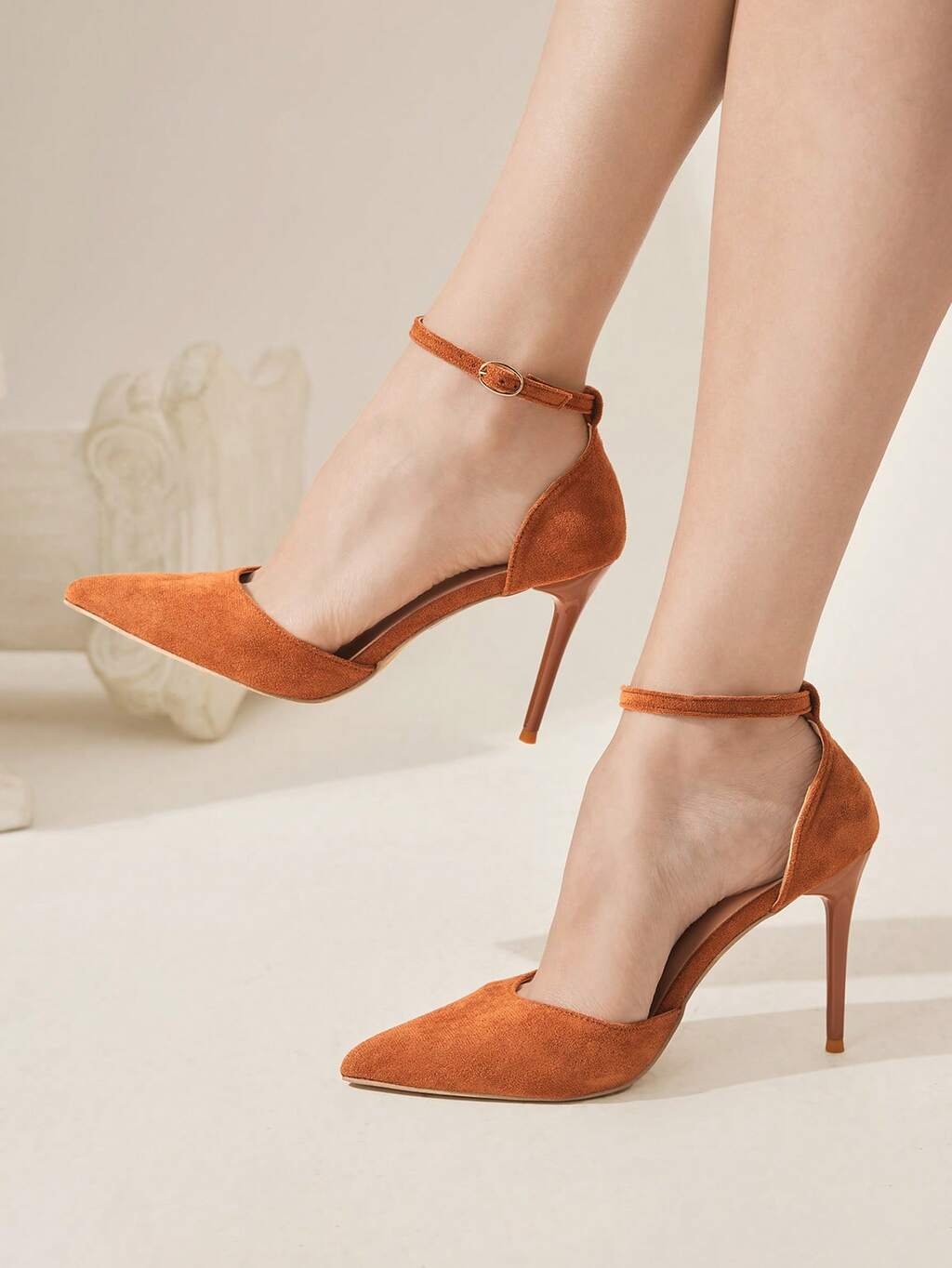CUCCOO SZL Sandalias de tacón alto con punta redonda, estilo francés elegante y sexy, con tira de tobillo de 8.8 cm de color albaricoque de PU, para fiestas