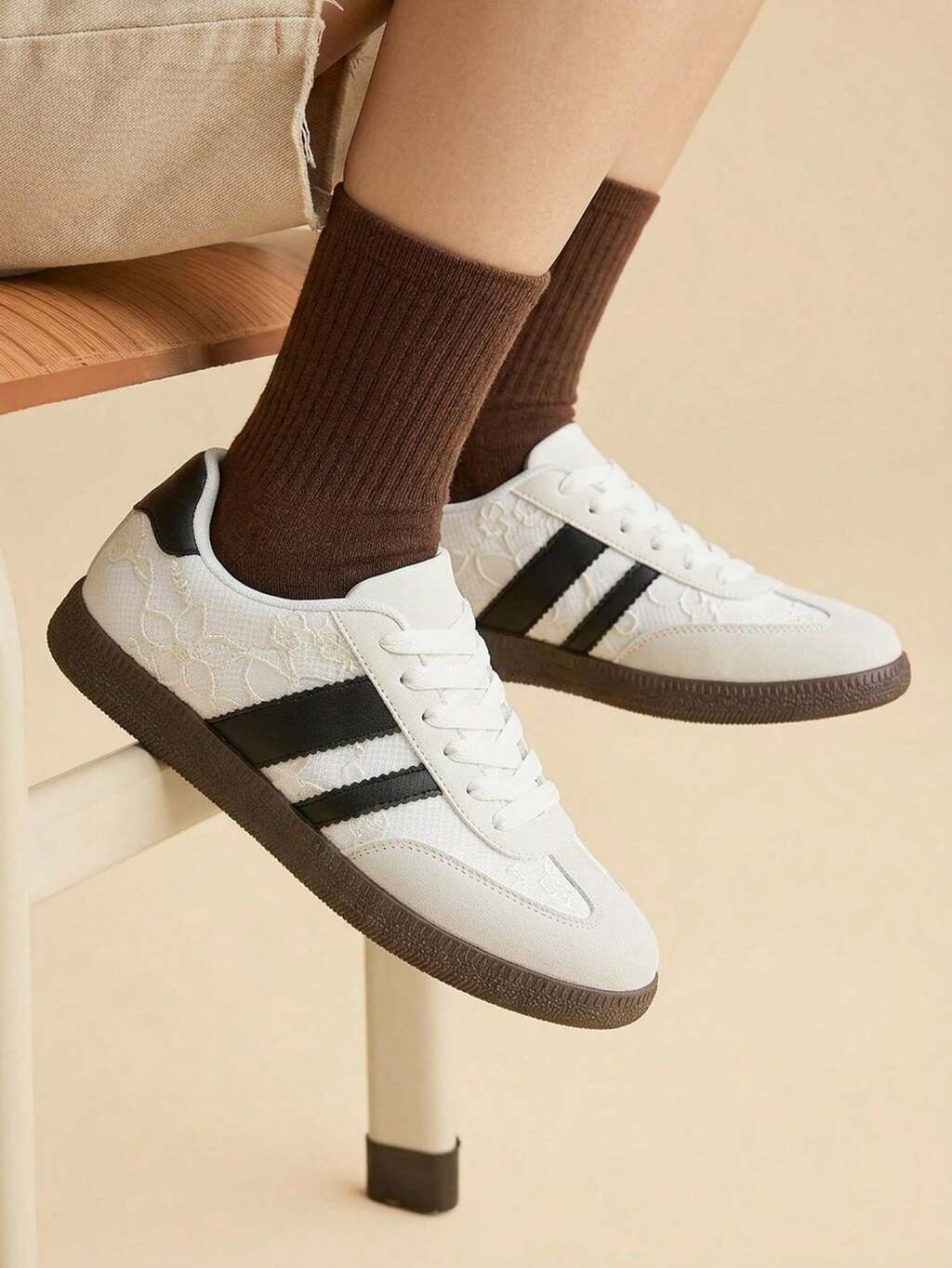 CUCCOO EASI Baskets de gym décontractées pour femmes, de couleur unie contrastée et style preppy. Chaussures plates décontractées à lacets en patchwork marron. Chaussures de sport rétro mode pour l'extérieur et la course