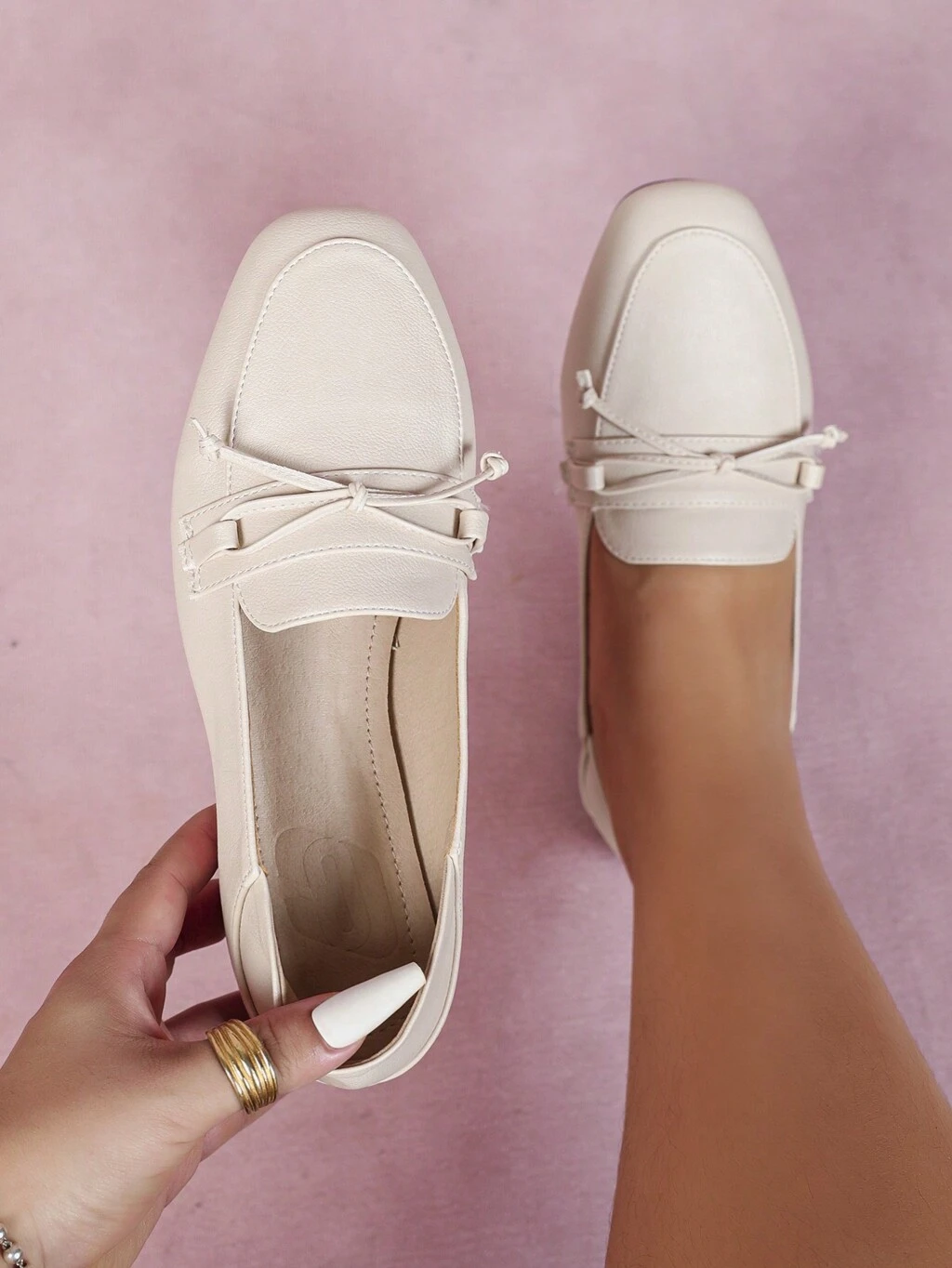 CUCCOO CURVES 2024 Nouvelles chaussures plates confortables et polyvalentes pour le printemps et l'automne, avec un nœud décoratif, en couleur unie et à bout carré